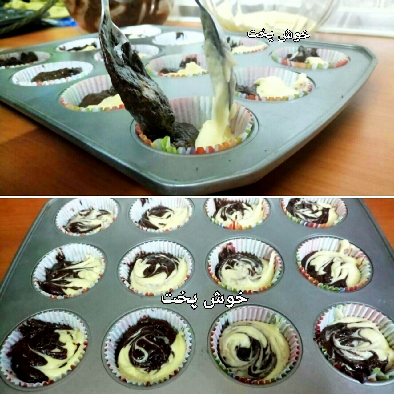 حالا مواد رو درون قالب میریزیم ودر انتهای کارقالب رو به کف آشپزخونه می کوبیم تا حبابهای هوا ازش خارج بشه سپس داخل فر خانگی خوش پخت قرار میدهیم و 45 تا 55 دقیقه بهش زمان میدیم تا بپزه .